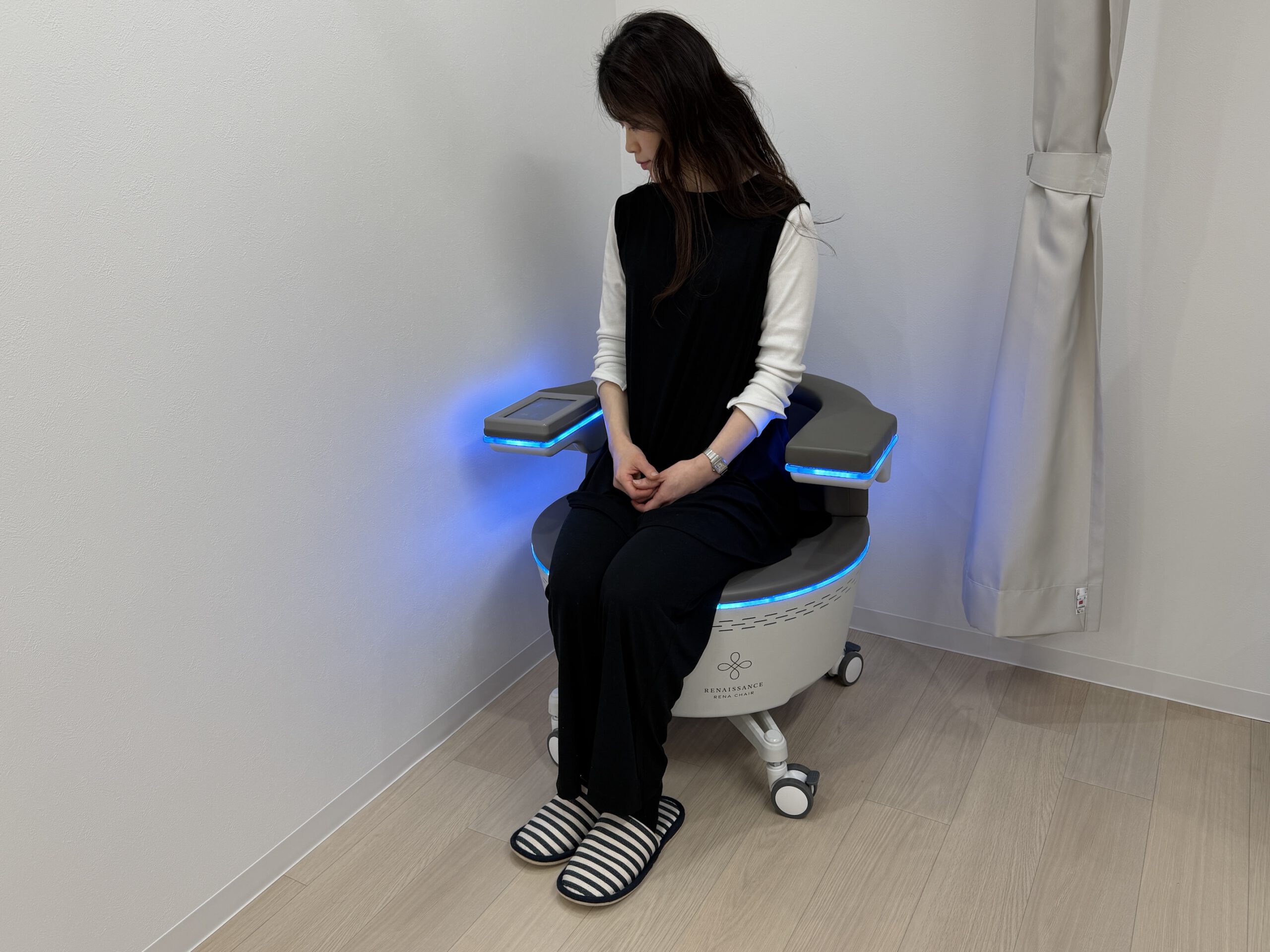 はい。ルネチェアは服を着たまま座るだけで骨盤底筋ケアができる画期的なマシンです。生理中の方でも安心して受けていただけます。